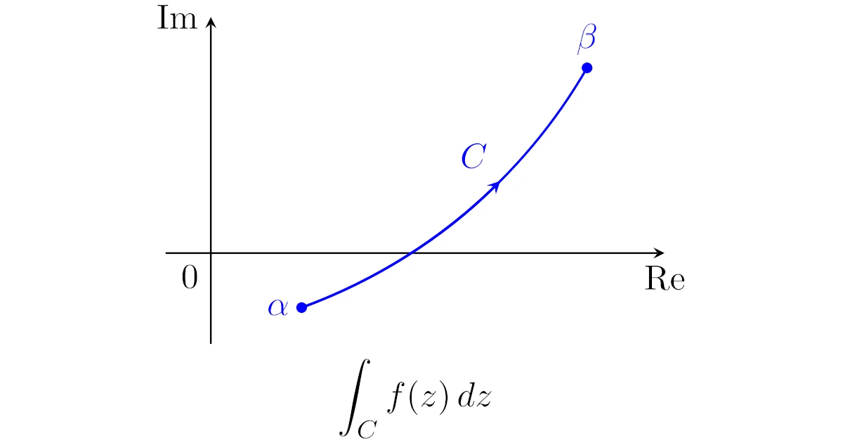 複素平面上の有限の長さをもつ向きの付いた曲線$C$を考え,$C$の始点を$\alpha$,終点を$\beta$とする.また,$C$上で連続な複素関数$f$を考える.曲線$C$を