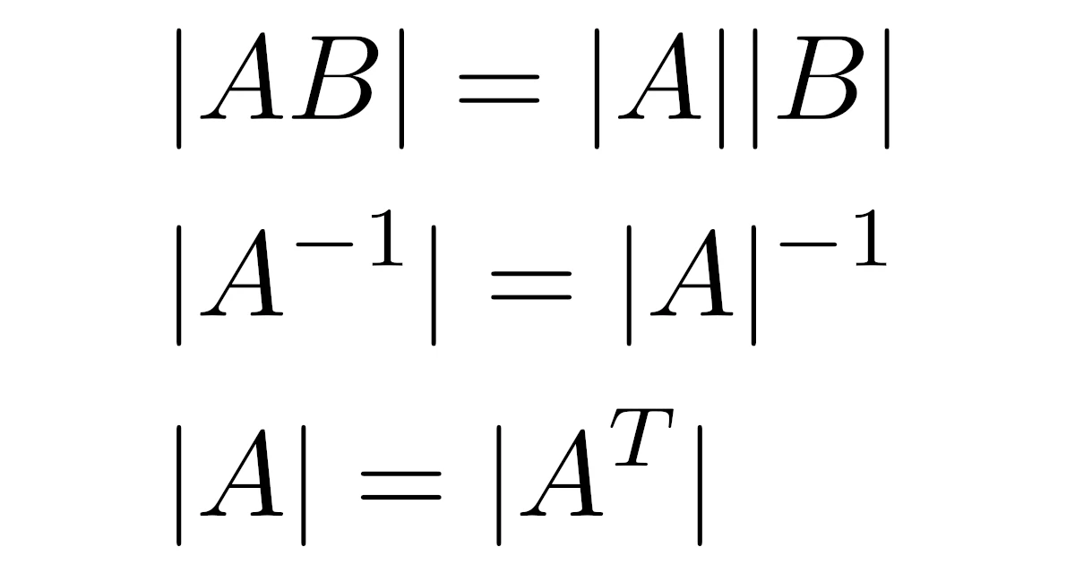 行列式の基本性質として,転置行列の行列式・行列式の交代性・行列式の線形性・積の行列式を説明します.